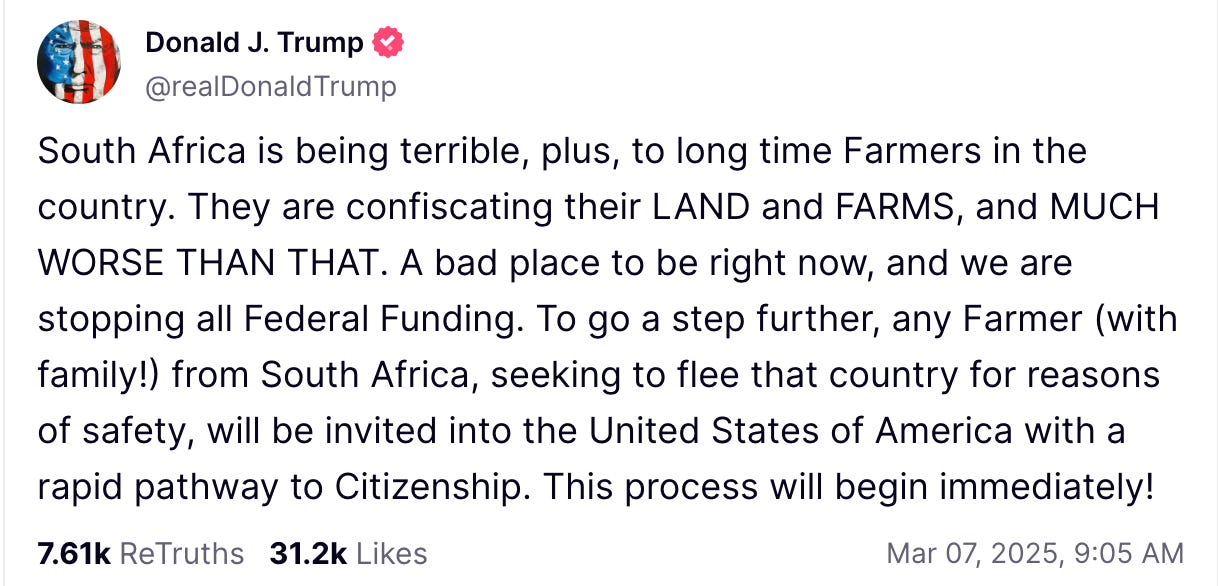 While Trump is seeking to deny citizenship to U.S.-born babies, who would grow up in this country reciting the Pledge of Allegiance, singing the National Anthem, and learning about democracy and the U.S. Constitution, he simultaneously wishes to offer pathways to citizenship to: