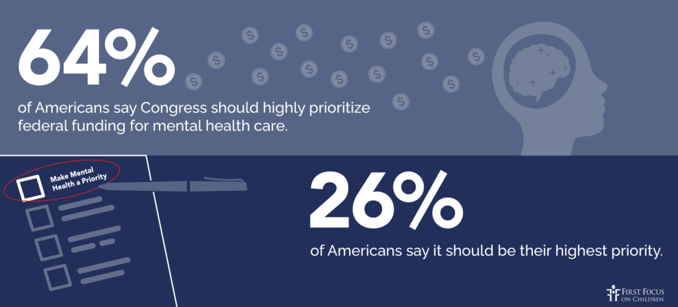 64% of Americans say Congress should highly prioritize federal funding for mental health care, and 26% say it should be their highest priority.