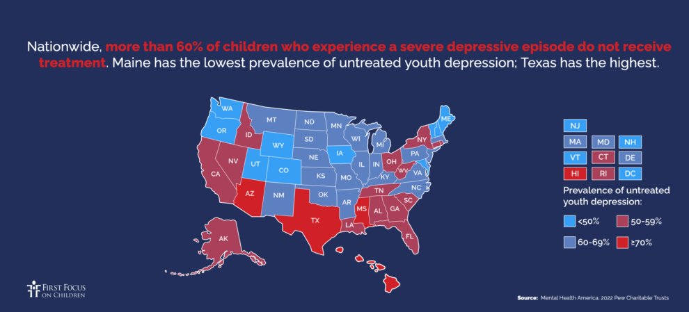 According to a poll conducted by Lake Research Partners in May 2022 for First Focus on Children, American voters believe — by a roughly 6-to-1 margin — that the federal government is spending too little on the health, safety, and well-being of our children. Support for children’s programs crosses race, gender, and party lines. By a 66-9% margin, voters believe that we are spending too little rather than too much on accessing mental health services for children.