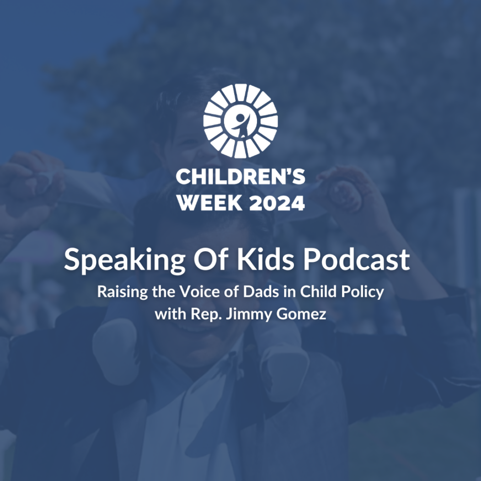 In this special Children’s Week episode of the First Focus on Children’s podcast, Speaking Of Kids, co-host Bruce Lesley chats with Rep. Jimmy Gomez (D-CA), chair of the Dads Caucus. Rep. Gomez launched the Dads Caucus after a photo of him holding and caring for his son Hodge on the House floor went viral. Rep. Gomez talks about how moms have been the “default parent” and the importance of fathers stepping up for kids both at home and in Congress.