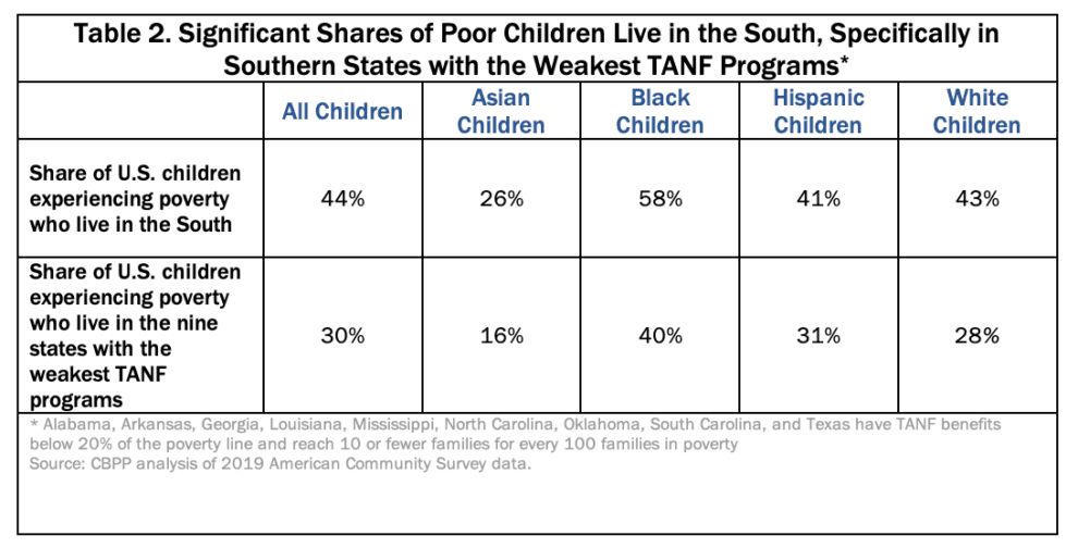TANF Benefits Too Low to Support Families, Especially in the South